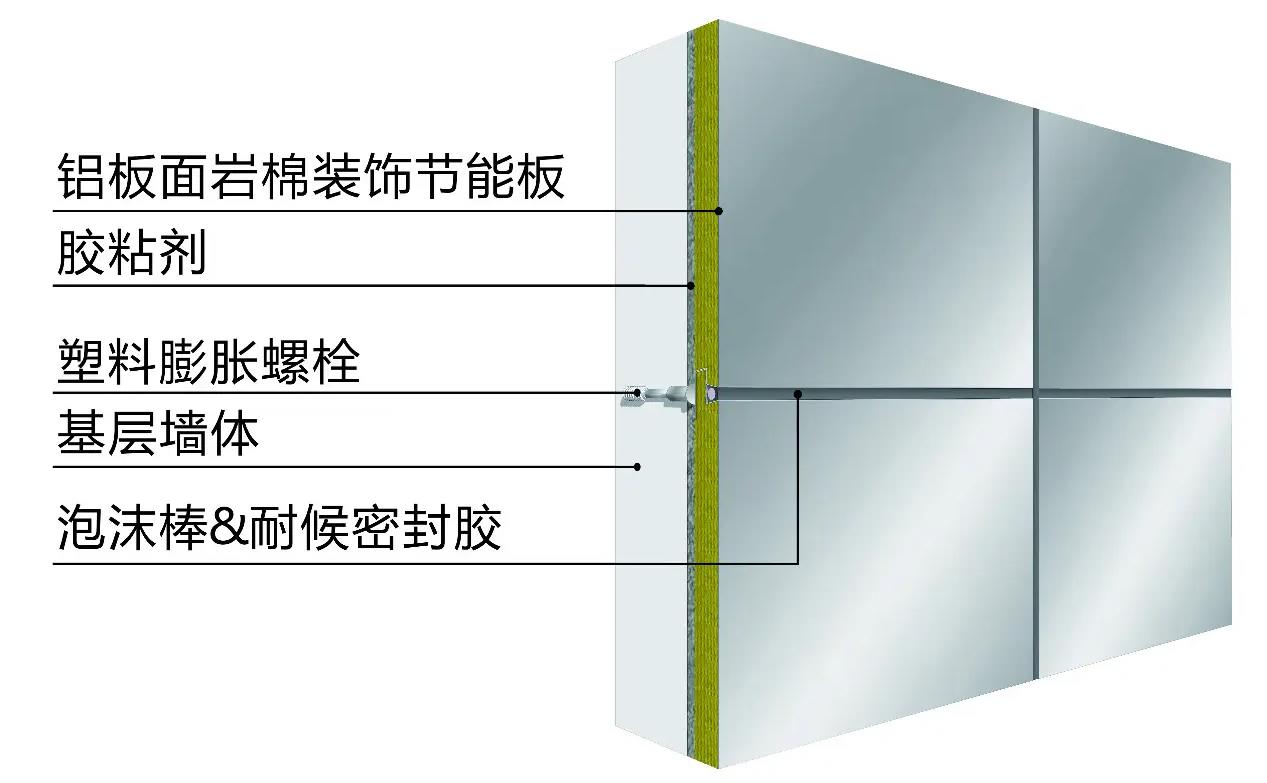一體化鋁板成品,運(yùn)用粘錨結(jié)合工藝,粘接錨固雙重保障,且施工簡(jiǎn)單無(wú)繁瑣步驟,施工效率提高60%