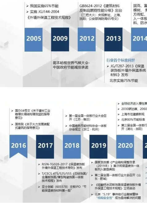 2017年《保溫裝飾板外墻外保溫工程技術(shù)導(dǎo)則》、《石材飾面/金屬板飾面/薄型陶瓷飾面一體板技術(shù)規(guī)程》發(fā)布,保溫裝飾一體板開始百花齊放。