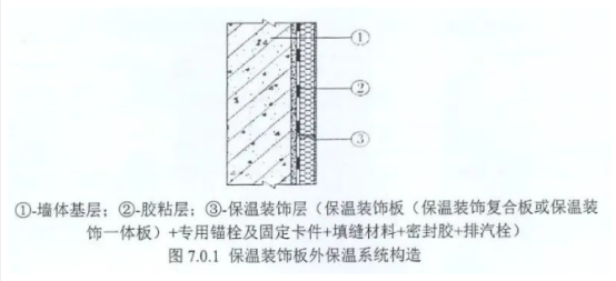 7.0.1 保溫裝飾板外保溫系統(tǒng)構(gòu)造應(yīng)符合7.0.1的規(guī)定。