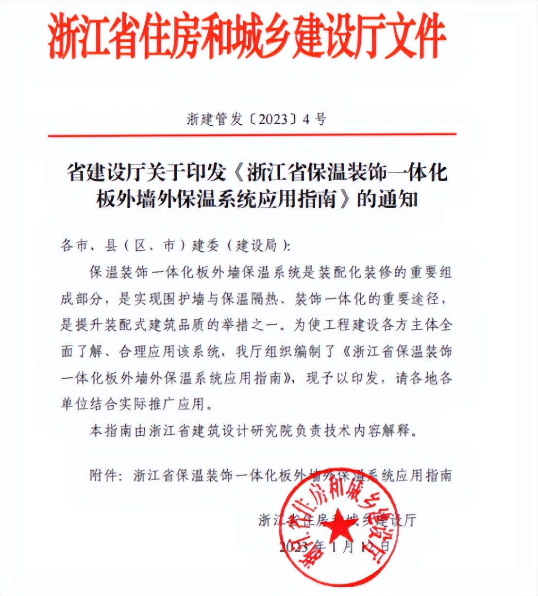 浙江省建設廳發布《浙江省保溫裝飾一體化板外墻外保溫系統應用指南》。
